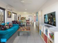 The Colorful kitchen is ideally located overlooking the air conditioned living area, with stainless steel appliances including dishwasher and plumbing for the fridge. Your living area opens up to your covered outdoor area.