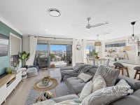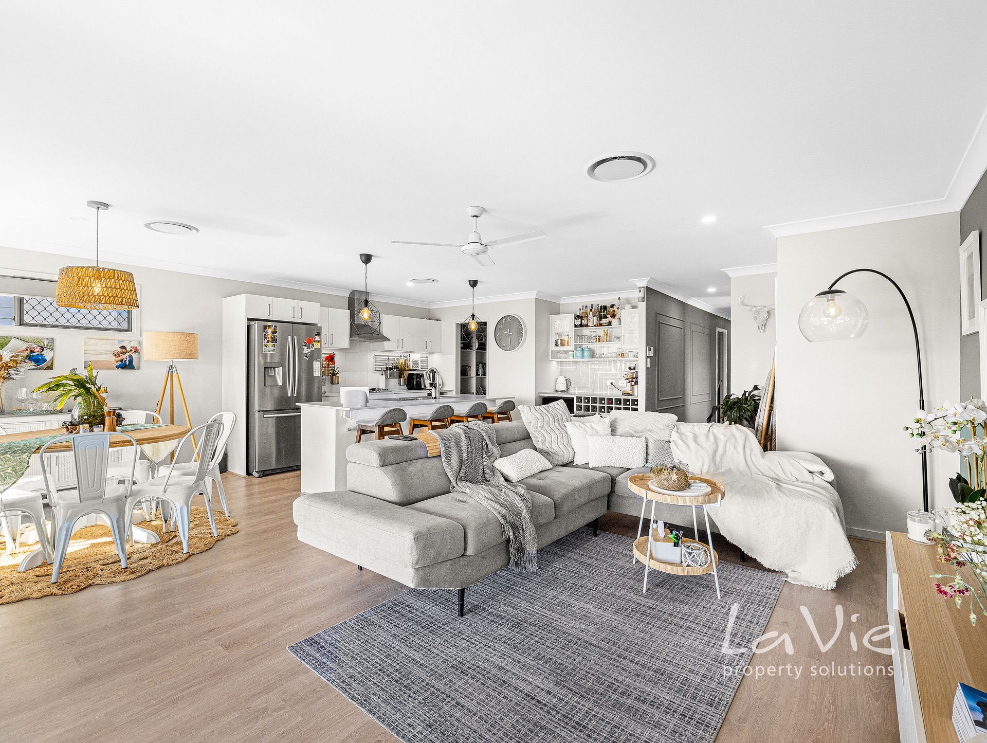Large open plan living area overlooking the back deck