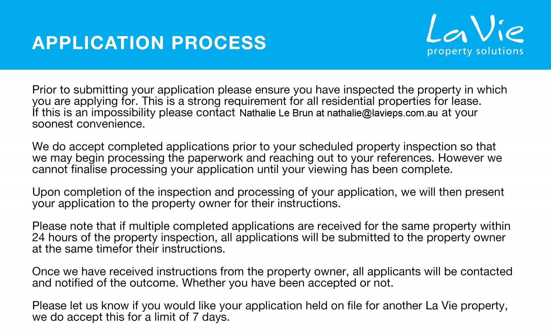 Once applications processed and deemed suitable for the property, we will be in contact to arrange for a private inspection.